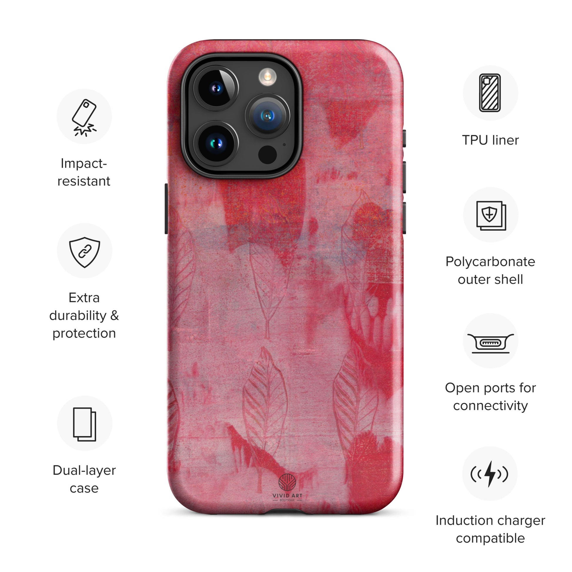 Protect your phone with style using a durable, dual-layered case. The outer shell is made of impact-resistant polycarbonate, while the inner lining sports TPU lining for maximum impact absorption. Keep your phone fashionable and safe all year round!